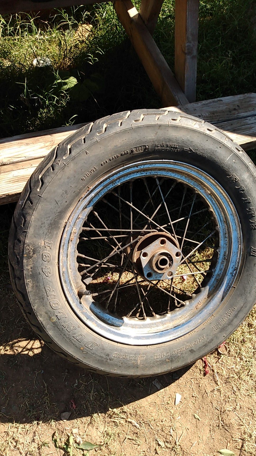 Have a Authentic Harley Davidson true spoke rim (off a 1970 shovel head) tire included!! The rim alone run between $200-$1500 online Only asking $60/obo for them!