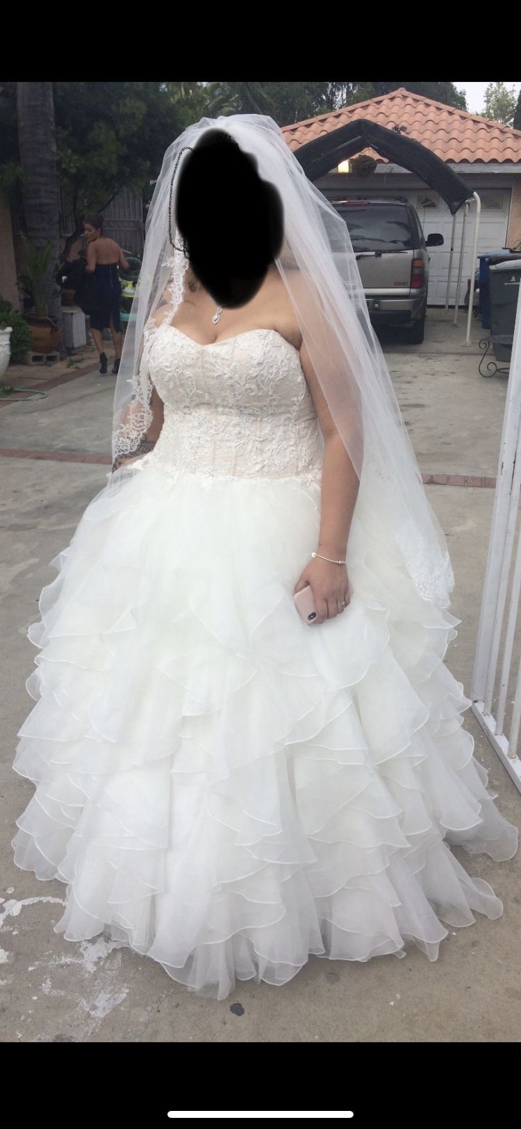 Ball gown wedding dress paid $1,900 asking for $500 firm already been cleaned steamed from the dry cleaners and put in a wedding box also has a sewed on bra
