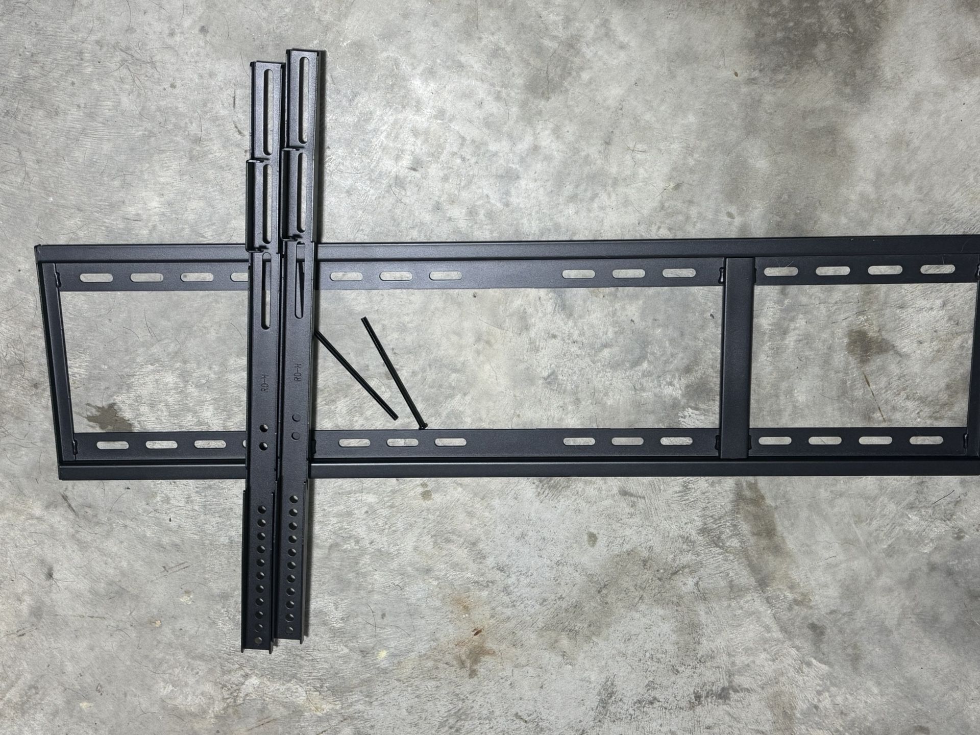 Tv mount , holds up to a 75” tv/displays. It comes with safety screws and can hold up to 150 pounds