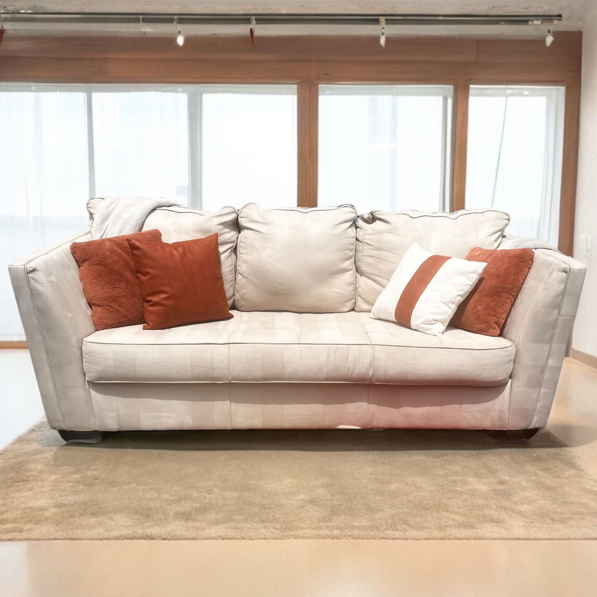 Comfortable Back & Seat Cushions. Smooth Durapella® Microsuede Fabric. Professionally Steam Cleaned. Excellent Shape. Original Condition. Wear & Tear Resistant. Stain Resistant. Filone Model by Ashley HomeStores Dimensions: Width 88in, Seat 19in, Depth 38in, Height 38in. Pickup in 92109 or Delivery with Zipcode.