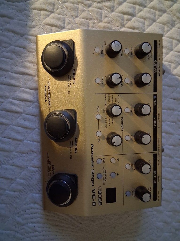 BOSS VE-8 Acoustic Singer, an all-in-one multi-effects pedal designed specifically for singer-songwriters who play acoustic guitar. It provides professional-grade vocal and guitar processing in a single compact unit.