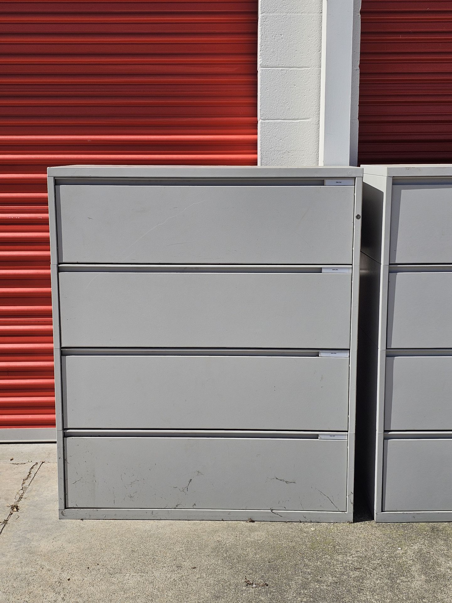 We have a variety of file cabinets in stock, in various sizes. Those on the fleet are $60 each, with a discount available for purchases of 10 or more. Shipping is also available for an additional fee.