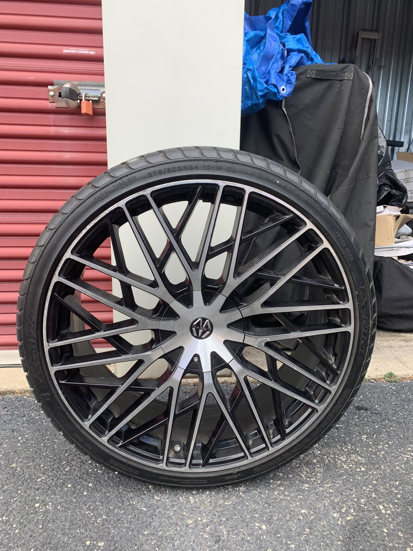 Rims with tires se of 4. 2 are in good shape. 1 was fixed ( look pictures) 1 need to be fixed have cracked inside ( look picture). Set of new rims coast 1800$. I am selling all set just for 550$