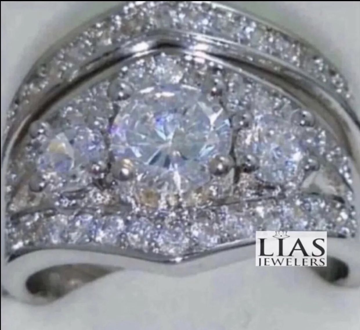Brand new 18 k white gold filled with lab created diamonds wedding ring set, engagement ring. Available in most sizes! Also have men’s wedding ring, men’s wedding band, bridal set, engagement ring , wedding ring set