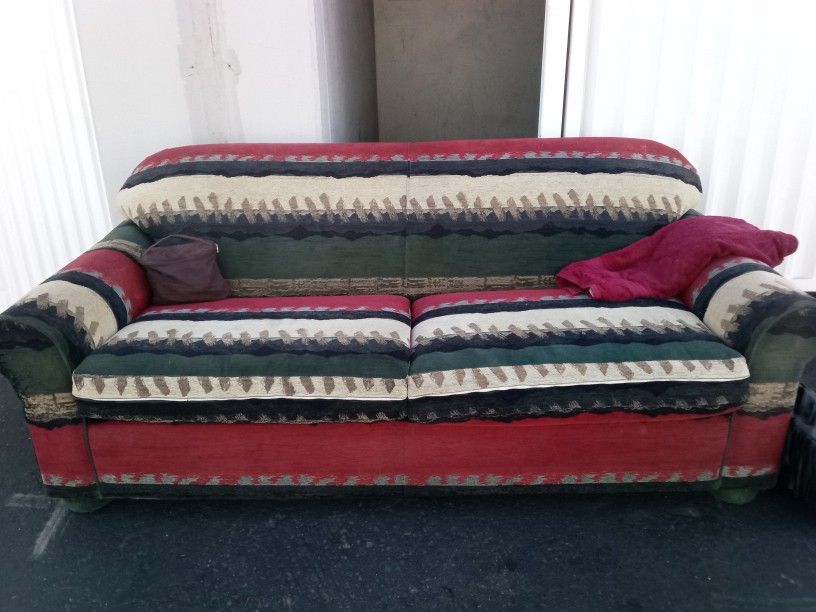 Love seat couch vintage embroidery red green and yellow cone pick it up it's yours for best offer