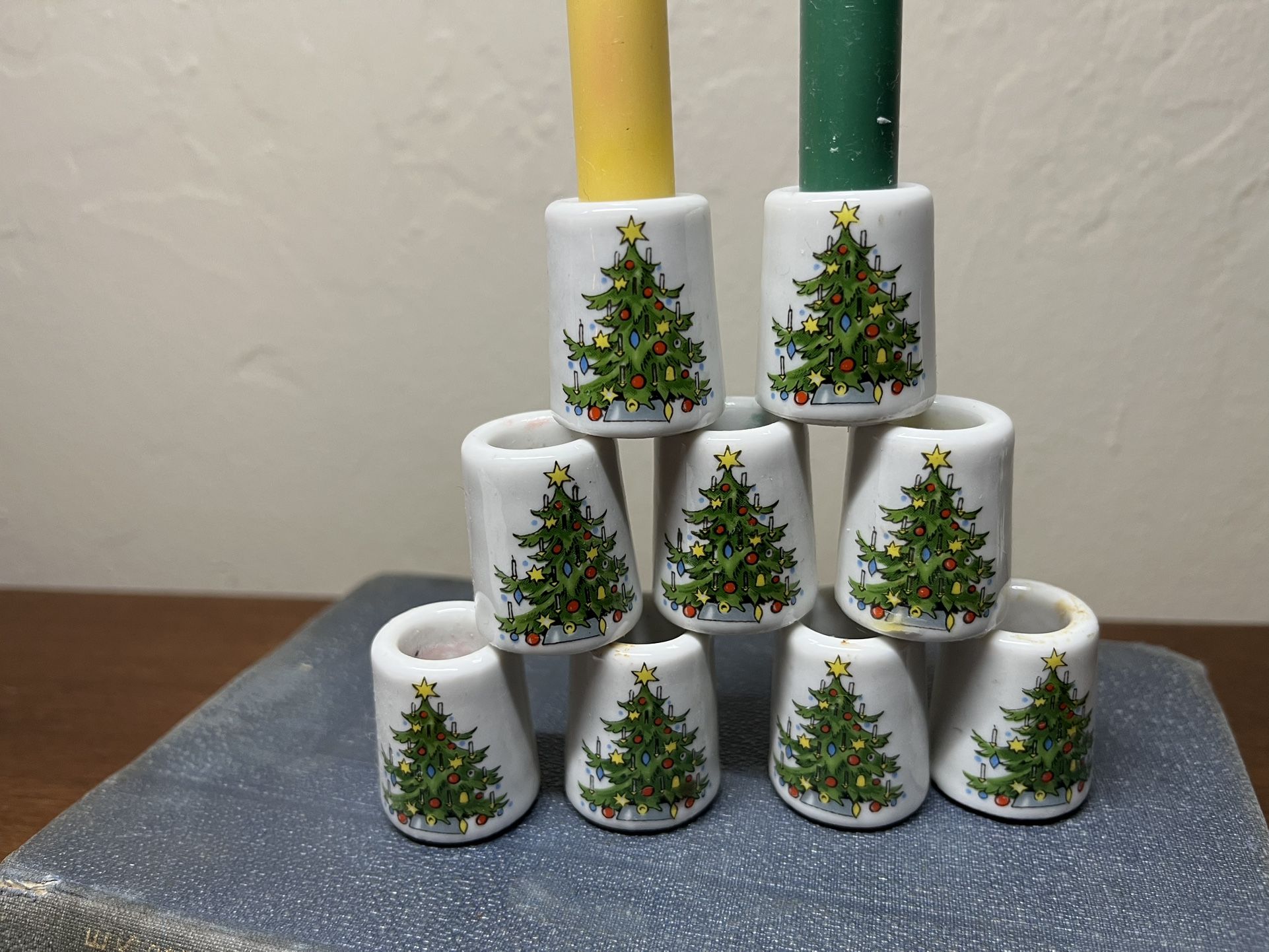 Impress your holiday dinner party guests with their own individual candle as part of the setting. These are made of ceramic and feature a decorated Christmas tree on both sides of each holder. Made in Germany by “funny design” company. They are authentic and defect free. 🎄🎄🎄