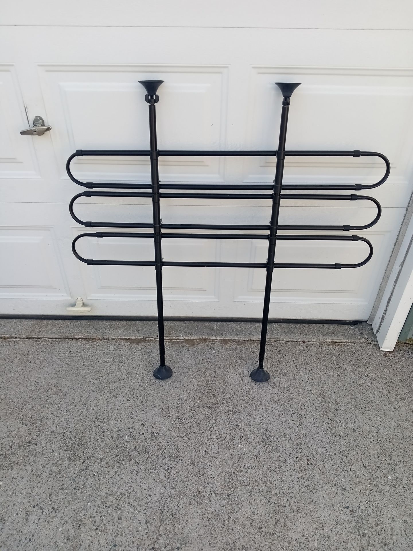 Fits most SUVs and minivans. Strong and stable design with a non-glare, black electro-coat finish and rubber cups to protect your headliner. Two sets of legs are included. - Easily adjusts to fit standard size mini-vans and SUV's - Very adjustable. - For PET LOVERS, secures your pet in the back seat!