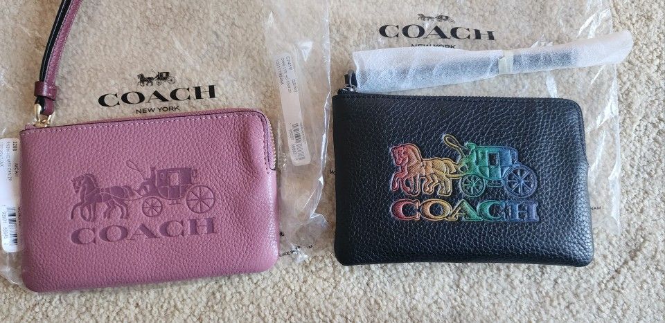 Coach Corner Zip Wristlet With Horse And Carriage Rose Multi (NWT)