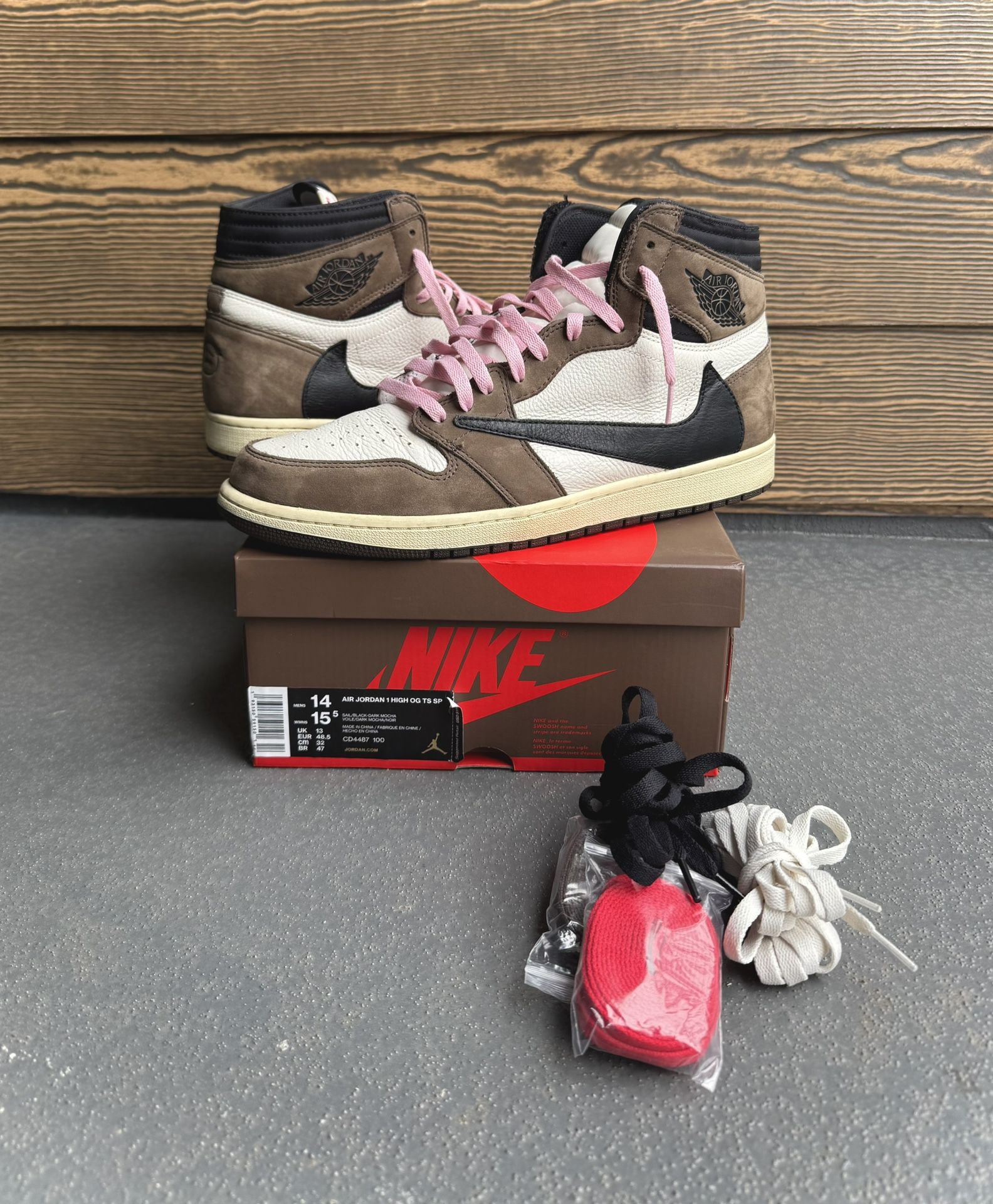 Retro Nike Air Jordan 1 High OG Travis Scott Mocha In Great Condition, With Snkrs App Proof Receipt Very Rare Size 14 $800 Retro, Nike, Air, Jordan, Rare, Flight, Jumpman