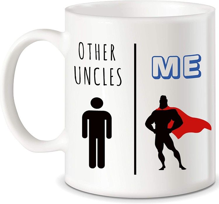 FUN STYLISH DESIGN - Unique and fun with cool sublimation design label imprint My Uncle Versus Me sexy superhero professionally printed on both sides of the mug as pictured so that everyone can see the awesome graphic whether you are right or left handed. C handle for an easy grip. Use as pretty decoration in your kitchen or cute desk accessory for pen pencil or kids toy and stuff holder. MICROWAVE AND DISHWASHER SAFE - Holds up to 11oz. Microwave and dishwasher safe for your convenience. It can wash over and over with no fading. Enough to brighten up super great uncles dads grandpas inlaws hermano or brother's day with this fun and humorous caffeine addicts and lovers mug to fuel them with their favorite nutritional prescription or power drink tea juice beer wine soda latte or fresh brew from your keurig machine. PREMIUM HIGHEST QUALITY - Made out of premium strong high quality white ceramic glassware drinkware material. Our mugs are carefully packed with protective packaging and comes with a fun stylish individual packaging gift box. Enjoy hot or cold small