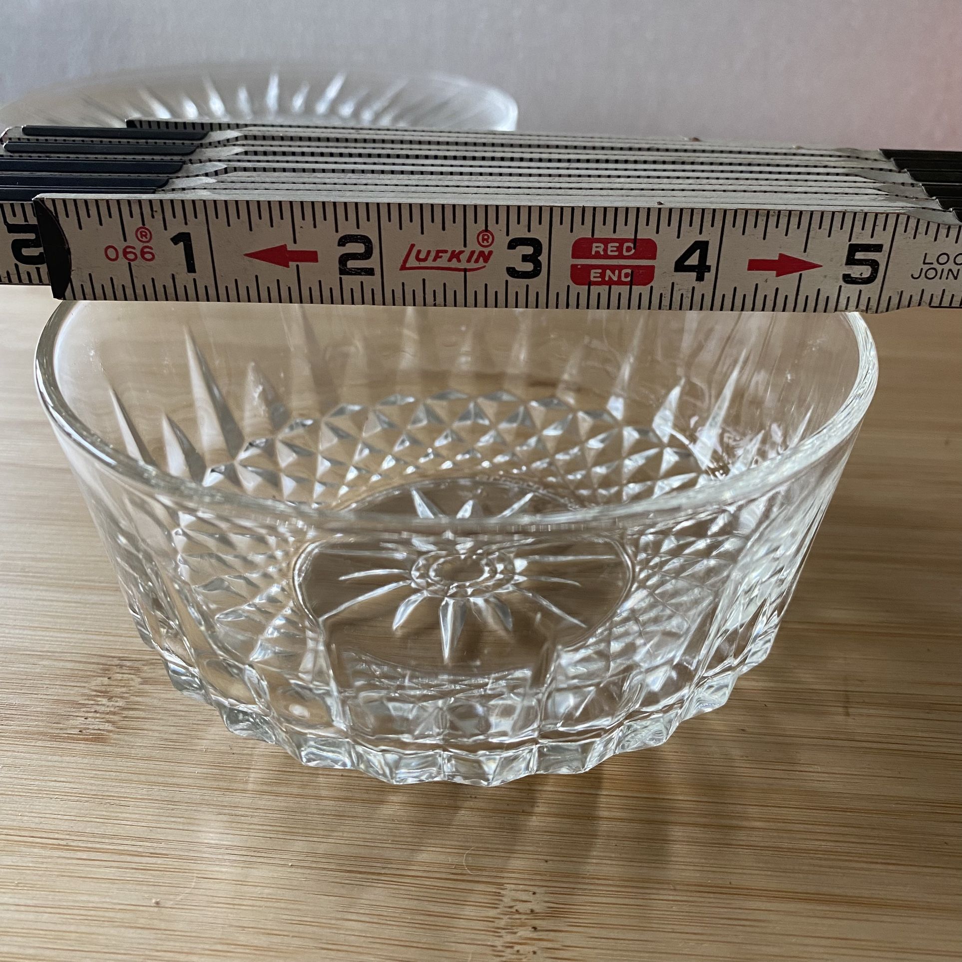 I have 2 of the 9” serving bowls! Vintage Arcoroc France Serving Salad Bowl 9" Wide Clear Glass. Made in France. This is pre-owned. It is in excellent condition. There are no chips or scratches.Please see the pictures for verification of condition. Each $25 I have 16 of the 5” salad/desert bowls also made in France. Great condition, Al the pre owned. Each $6 I also have 4 USA made 7.5” plates. These have the same designs as the ones listed above. Each $4 A set of 1 -9” + 8- 5” = $60 The more you buy, the better the deal. Please check out my other offers, So many different items to choose from. Thank you for taking your time here.