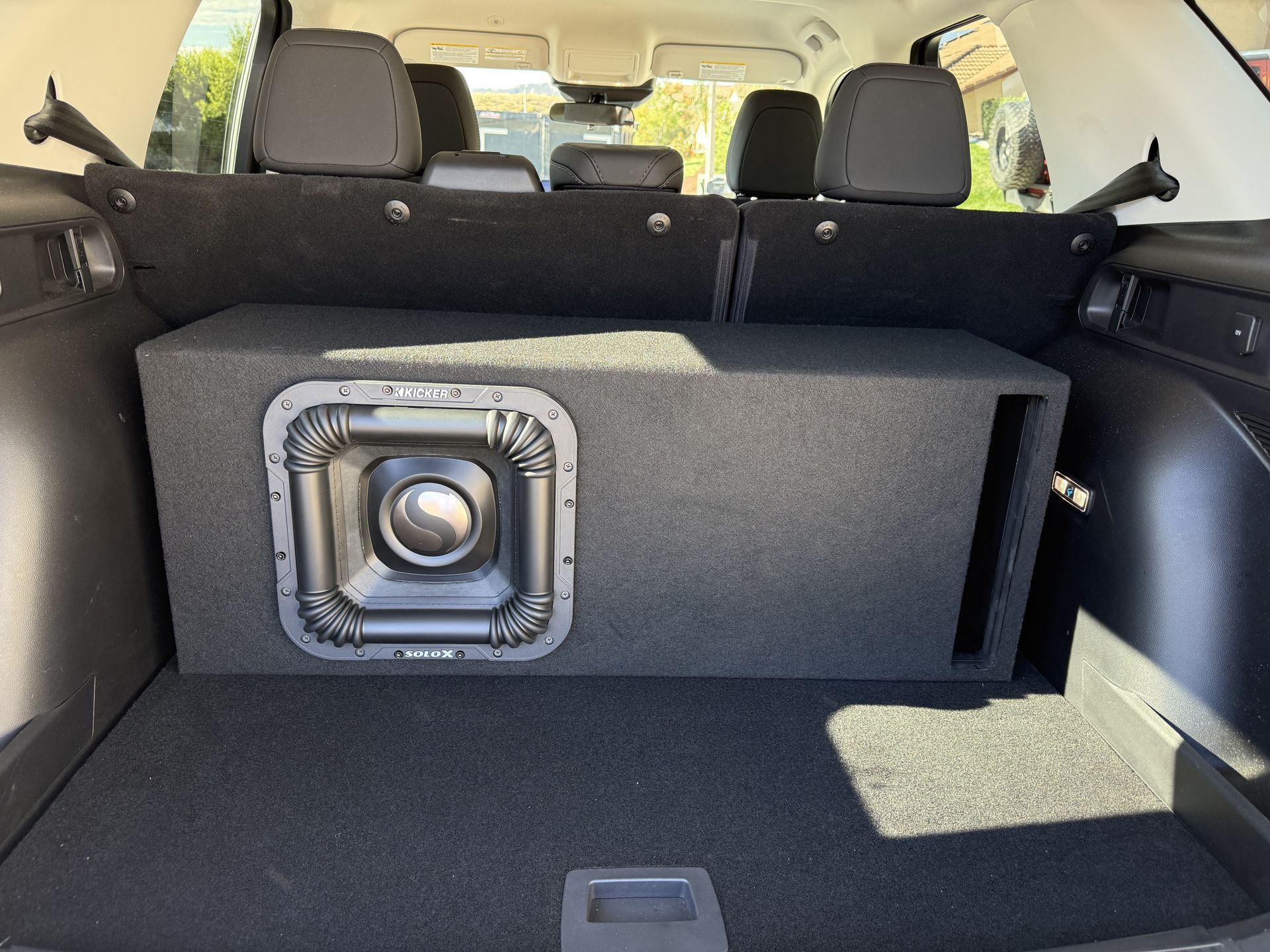 Custom sub enclosure tuned low 32 hrtz . Sub 12 kicker Solo X 12 1 ohm this Sub is to powerful for vehicle that’s why I am selling can test no damage no issues