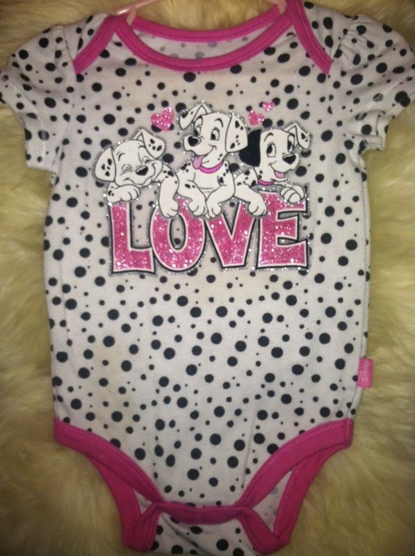 6-9 month 101 Dalmatians onesie small stain but good condition no cracks and still has glitter accents