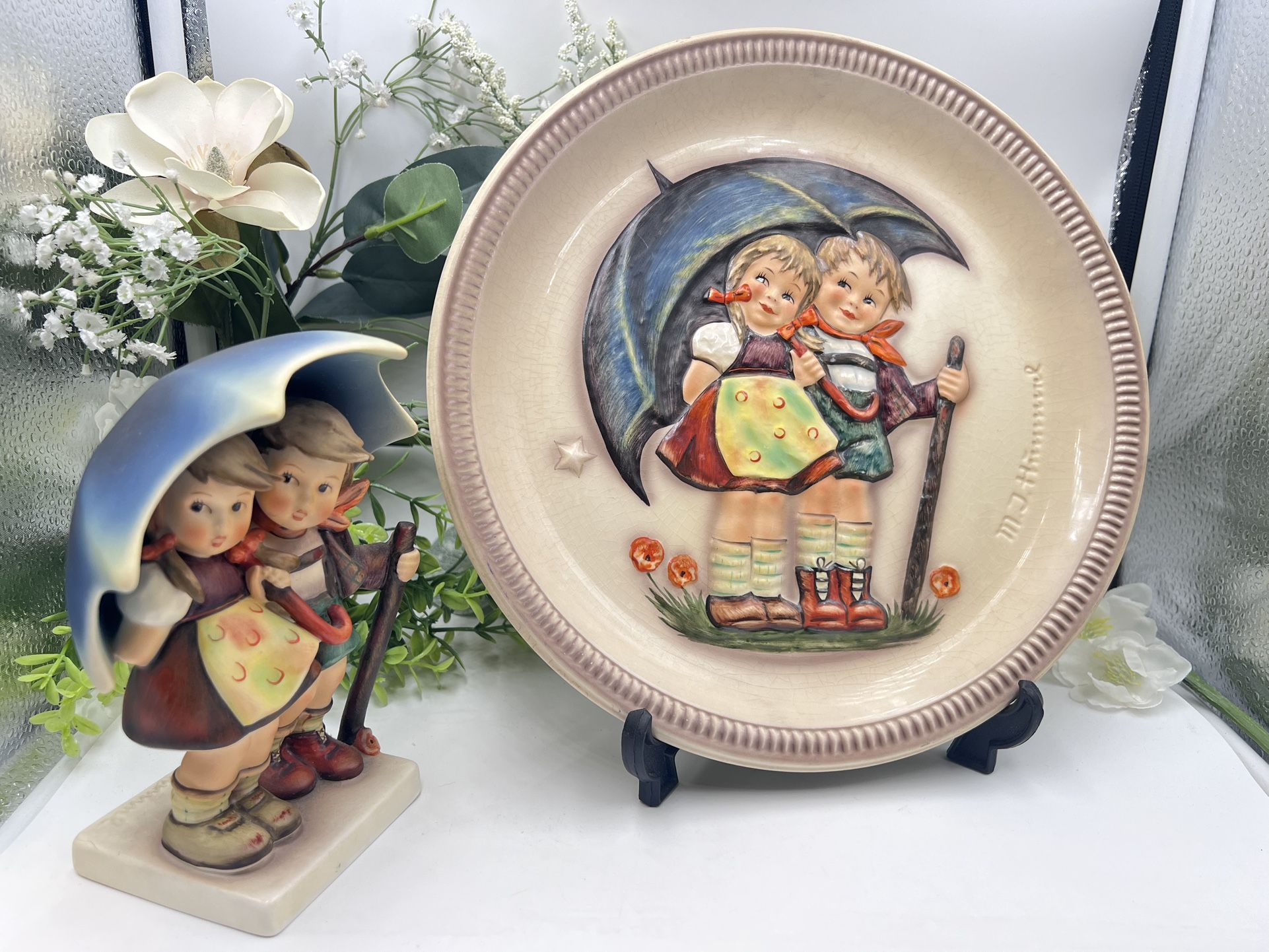 H1 Authentic M.J. Hummel Goebel “Stormy Weather” Anniversary Plate 1975 + Figurine – W. Germany