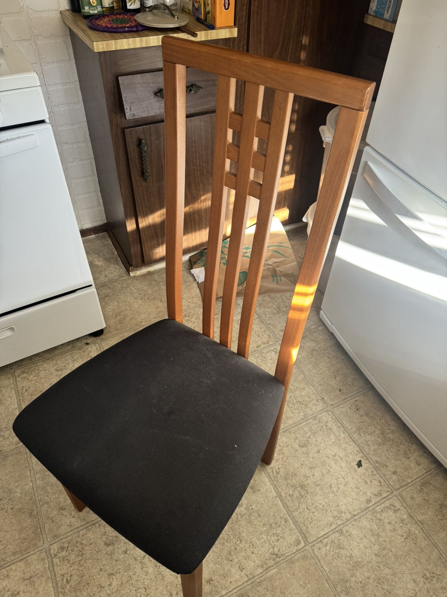 Barely used, great condition. Beautiful back design for high end dining set up. (We are also selling the wooden dining table, but that would need to be refinished.)