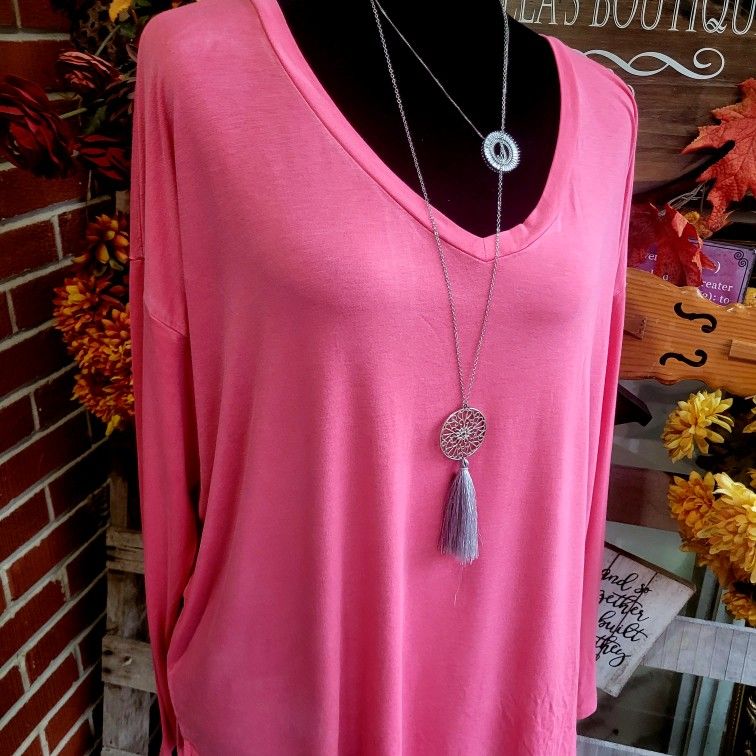 Mossimo Supply Co Coral Colored Longsleeve Top. Easy wearing soft flowing Top. Perfect to pair with a pair of leggings or your favorite jeans. Size XL #JLY8324