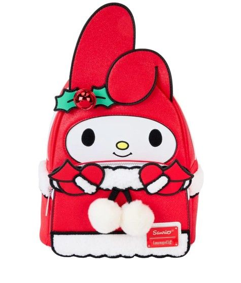 Ring in the holidays with the sweetest of sounds. Our My Melody mini backpack features a real jingle bell decoration—and other festive surprises. Her characteristic hat rises up in applique detail, over the front pocket, which is also decked out for the holidays. Fluffy white sherpa details accent the glittery red of her attire—and white pom-poms hang from real-cord details. There’s plenty of room to secure your daily essentials and share the gift of friendship wherever you go. Features: Vegan leather (polyurethane) Padded, adjustable shoulder straps Side panels with sherpa details Zippered main compartment Zippered front compartment Silver-colored metal hardware Jingle bell Applique, sherpa, glitter, embroidered, real cord, pom-pom, and printed details Coordinating inside lining Dimensions: 9”W x 10.5”H x 4.5”D 22.9 cm W x 26.7 cm H x 11.4 cm D This backpack is an officially licensed Sanrio product.