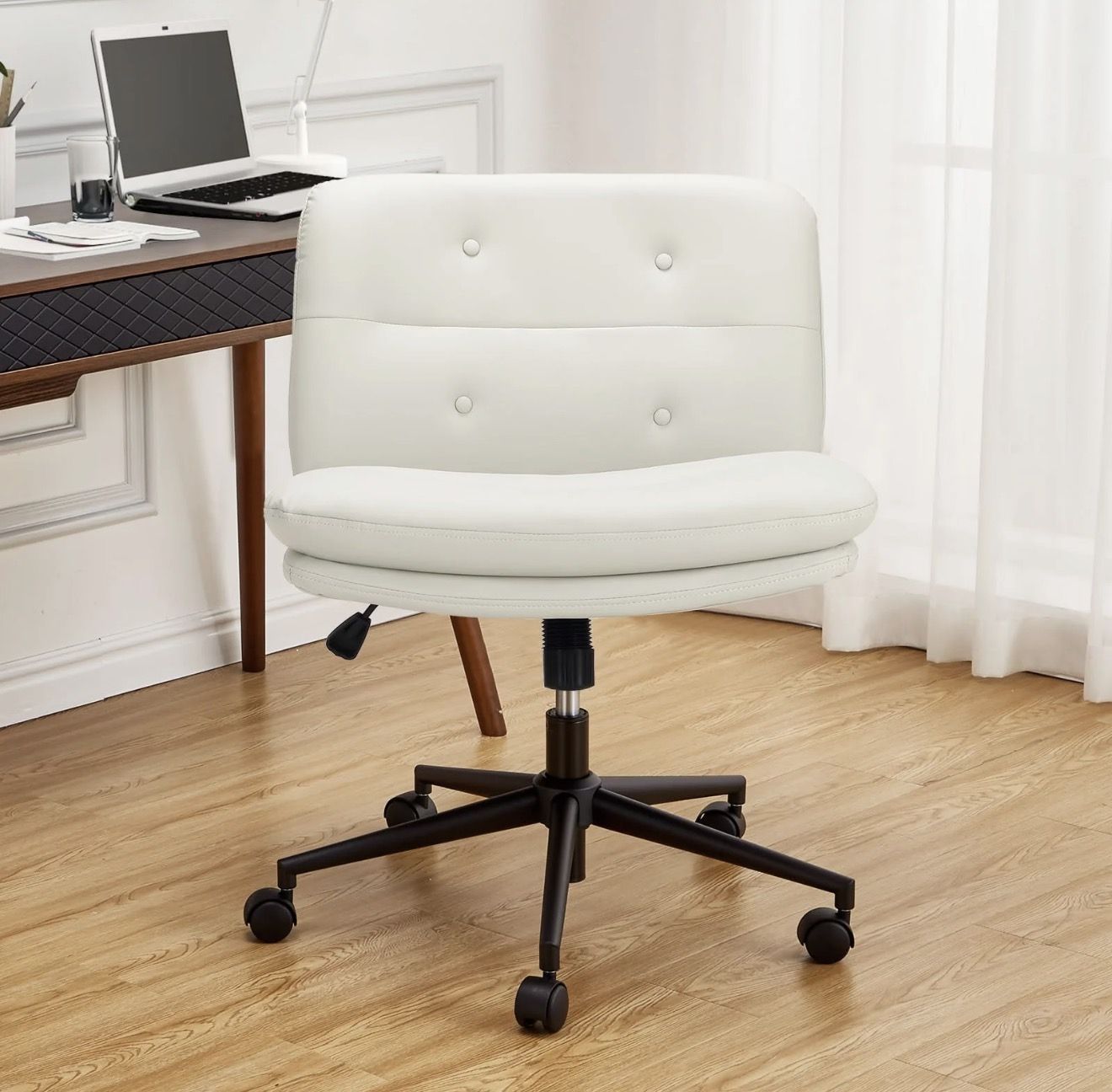New Armless vanity Chair with Wheels, Mid-Back Wide Seat Ergonomic Chair, 360° Swivel Vanity Chair, PU Padded, Off White Brand: Garvee Model: PHO_11KBWT4A $60 cash only and you must pick up