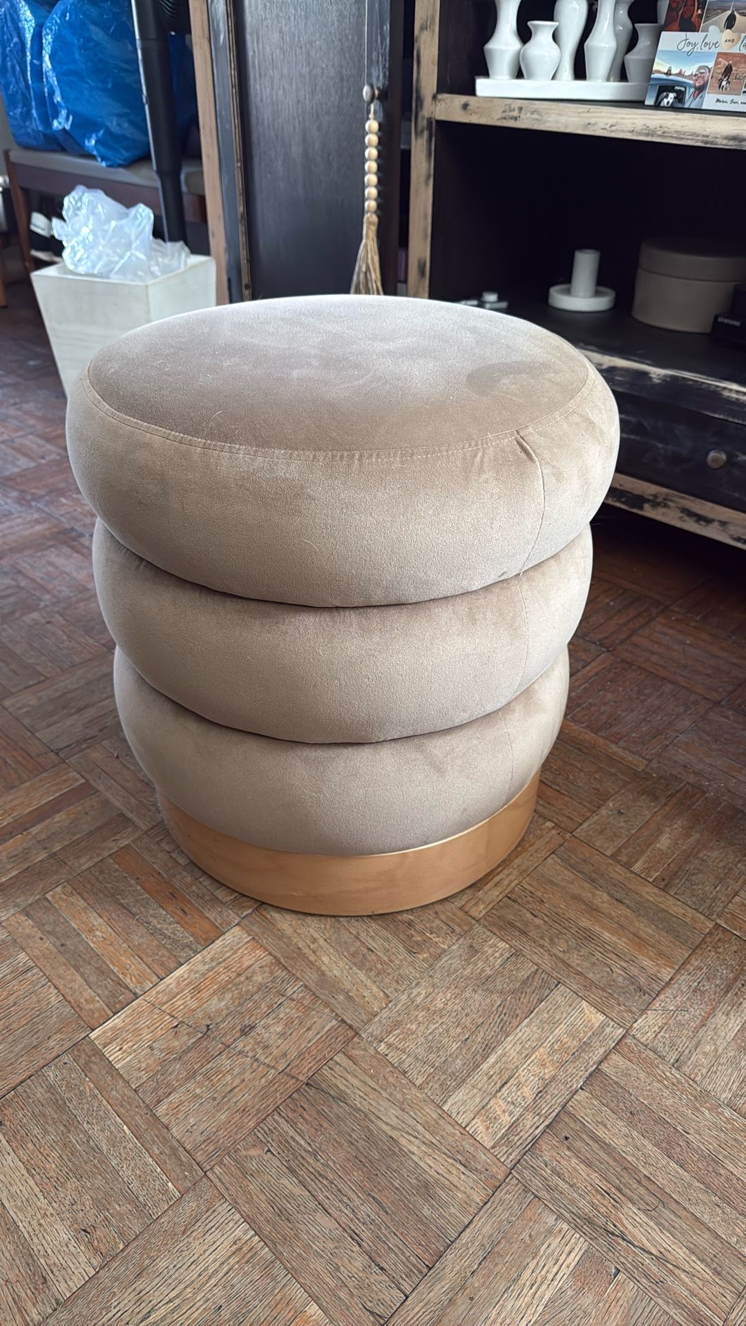 Threshold designed with Studio McGee Clarkdale Channel Tufted Ottoman Wood Base