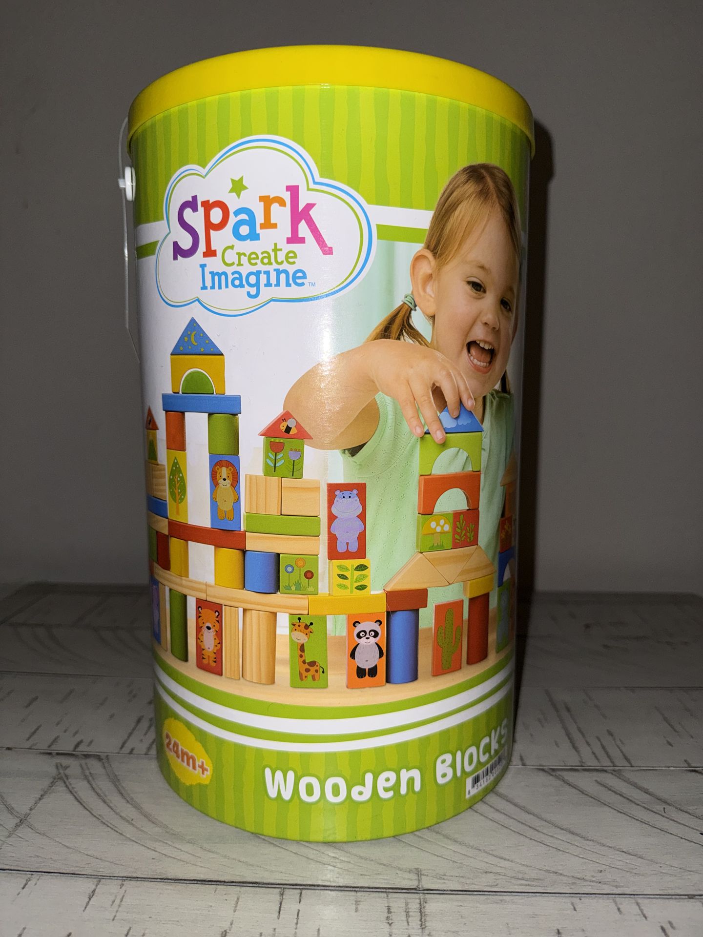 Perfect for countless hours of fun and productive play, the Spark Create Imagine Wooden Animal Blocks with Shape Sorting Lid is a great toy set for any child between 2 and 5 years of age. These durable blocks help your child develop as they learn about shapes, colors, animals, and more. The set comes complete with 150 blocks in both painted and natural finishes that are great for stacking, building, and playing with other toys and a sorting lid that helps your little one learn shapes as they clean up and put the blocks back in their container. Your child will love the bright colors and limitless possibilities for imagining and creating their own world of pay. Whether it's for birthdays, Christmas, Hanukah, baby showers, or other occasions, the Wooden Animal Blocks with Shape Sorting Lid makes a great gift for the playful child in your life. SPARK Create Imagine Wooden Animal Blocks with Shape Sorting Lid 150 Pieces • Provides great fun for kids 24 months to 60 months • Features 150 blocks in both natural finishes and bright painted colors with animals, plants, and other designs • Durable wooden construction makes for a long life of use and can be passed down for generations • Sorting lid helps children learn about shapes as they clean up • Ideal for teaching kids shapes, colors, animals, and more • Must-have developmental toy for every child • Made with FSC certified wood • Great for countless hours of imaginative play