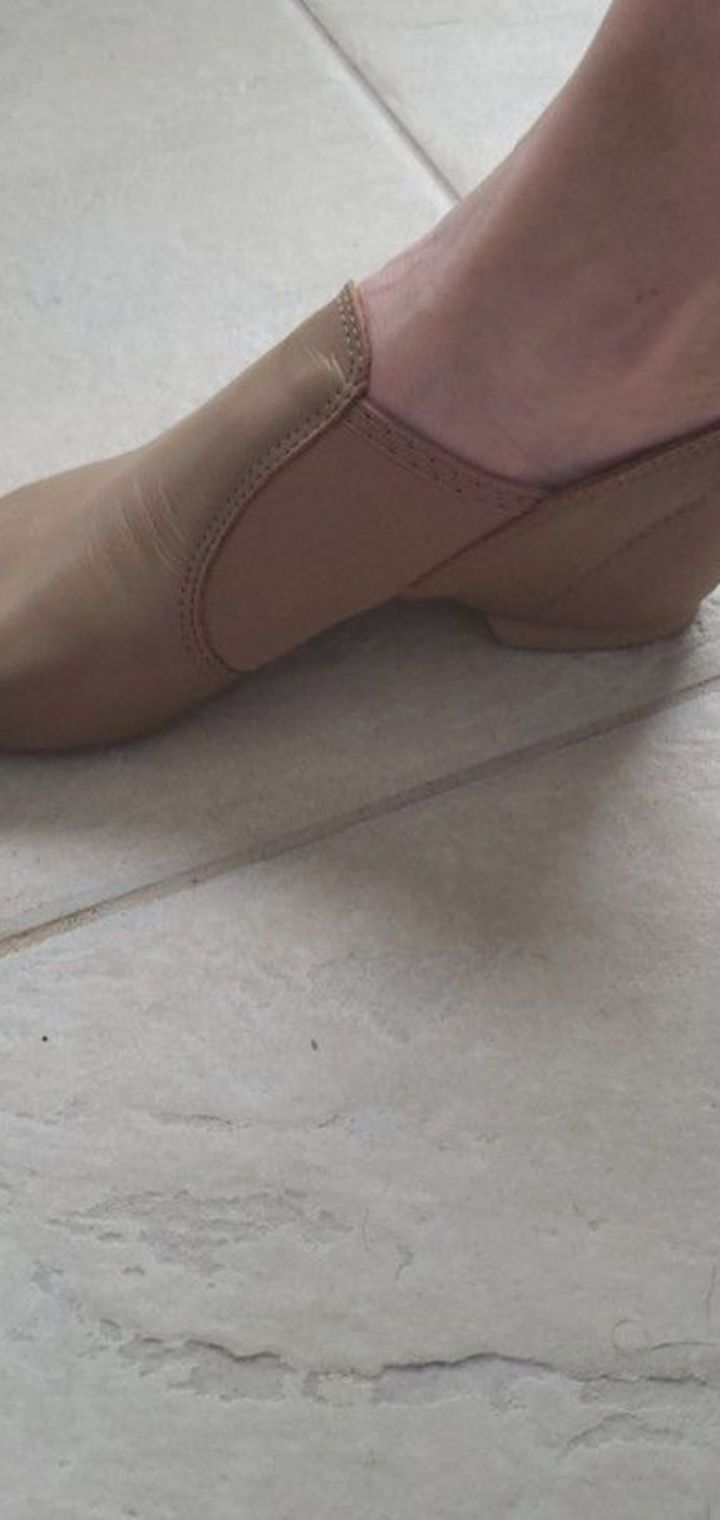 Capezio E series slip on jazz shoe in black and tan. Sizes: 5 through 14 and half sizes.