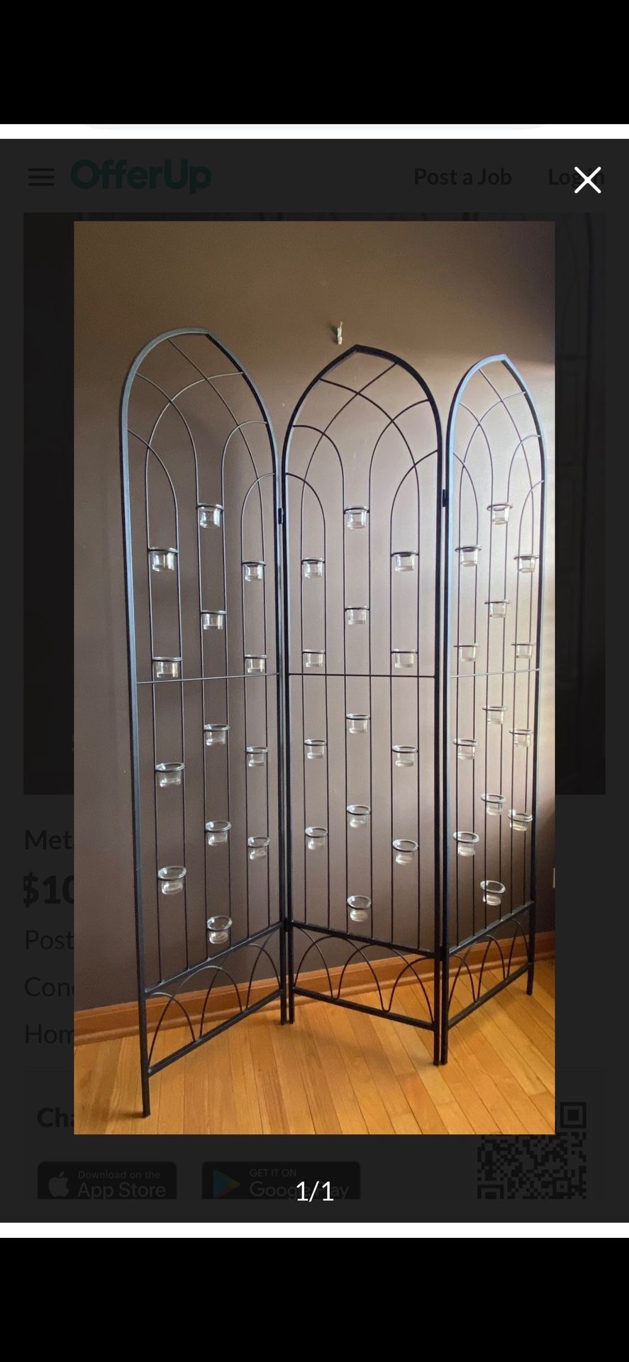MAKE ME AN OFFER!!! IRON WITH BLACK FINISH 3 PANEL ROOM DIVIDER 39 GLASS CANDLE CUPS HOLD TEA LIGHTS 70” TALL x 54” WIDE WHEN EXTENDED. LOOKS BEAUTIFUL AT NIGHT WHEN ALL THE CANDLES ARE LIT. BARELY USED. HAS BEEN IN STORAGE CASH ONLY—-PICK UP ONLY