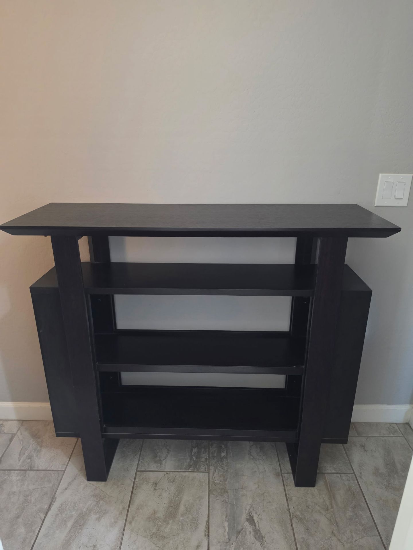 Buffet style bar cabinet espresso color in good condition. Length-47-1/4” Width-15-1/2” Height-42-1/4” asking $60.00 OBO.