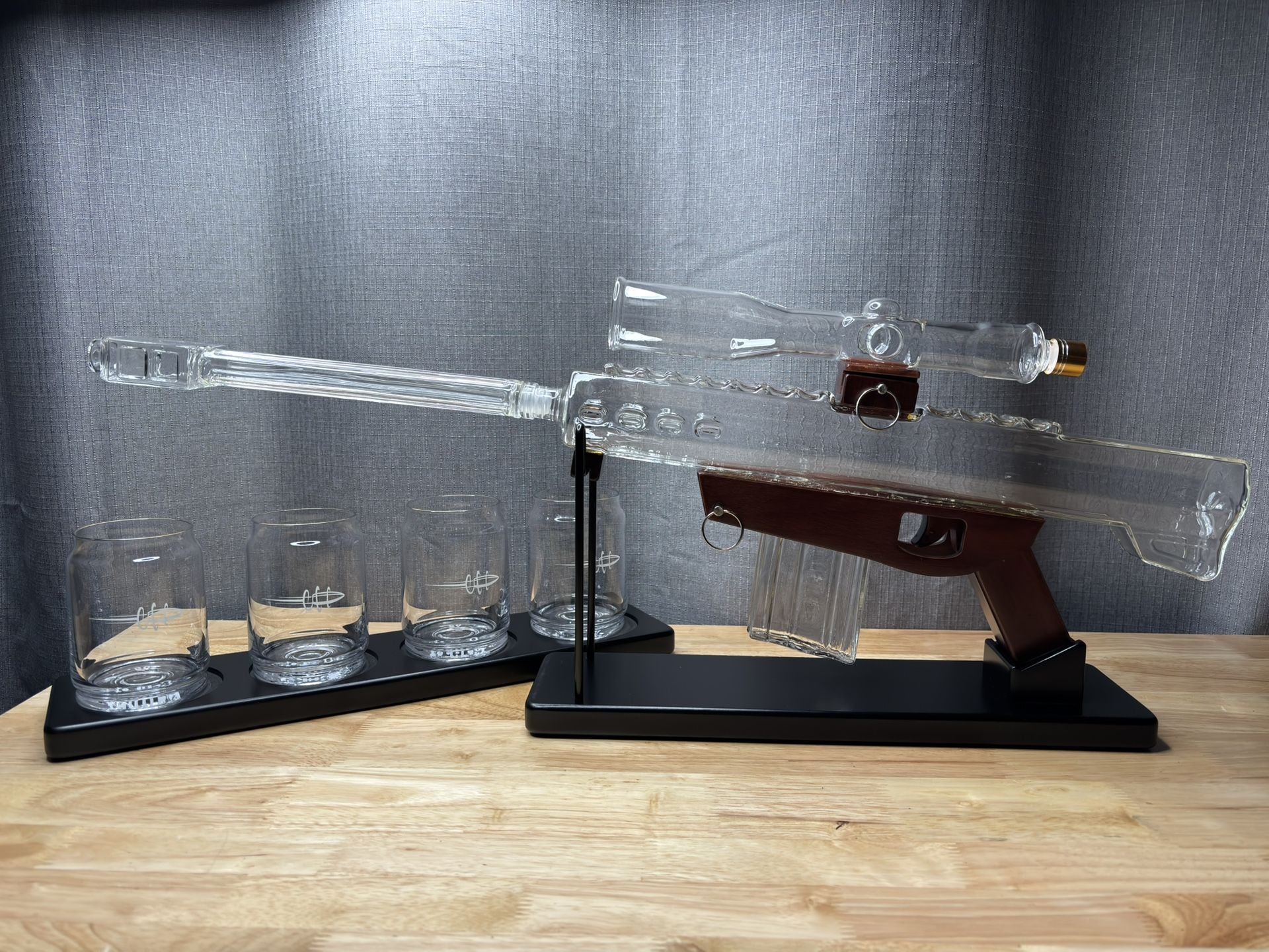 Sniper Rifle Shaped Glass Whiskey Decanter Sets