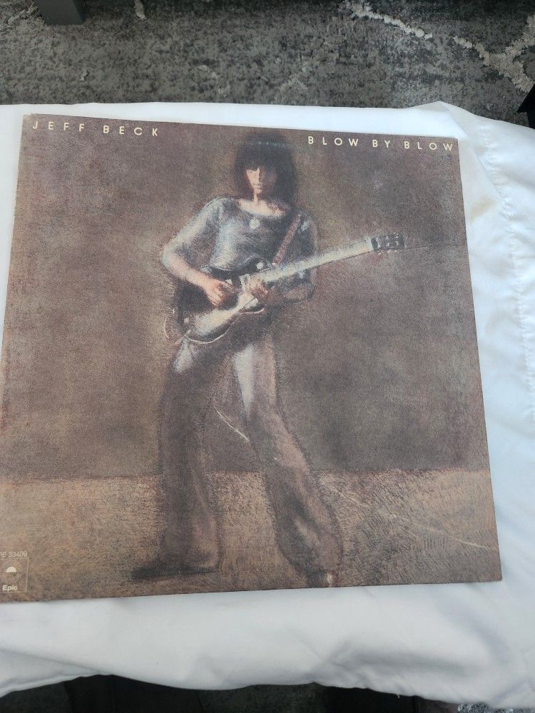 Vinyl LP of the album Blow by Blow by Jeff Beck. It is an all-instrumental album released in 1975. The album was produced by the legendary Beatles producer George Martin. It features nine tracks, including "You Know What I Mean," "She's a Woman," and "Freeway Jam". The record label is Epic Records, with the catalog number PE 33409 visible on the cover. 1/9/26 7018