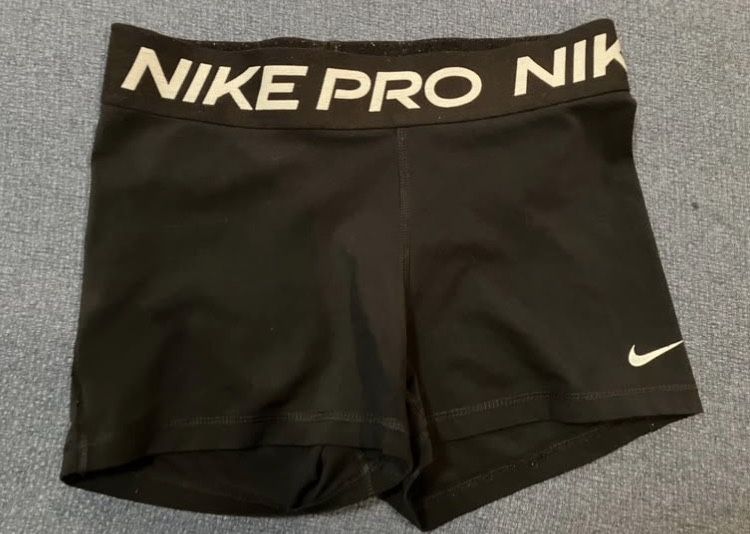 Selling a pair of black Nike Pro compression shorts with white logo in excellent condition. No rips, stains, fading, or stretching. They still have great compression and hold their shape. Perfect for gym workouts, running, training, or everyday activewear. Comfortable, breathable, and supportive fit. Gently used. From a clean, smoke-free home.