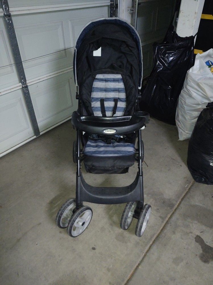 ***PICK UP ONLY*** Used but still very sturdy and has a large storage bin. Carrier clicks onto stroller and can be used in the car.