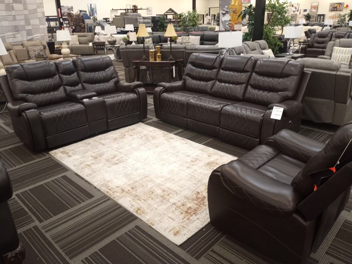 Air Leather / Brown Power Sofa Stationary Loveseat w/ Cupholders Power Arm Chair USB Connections