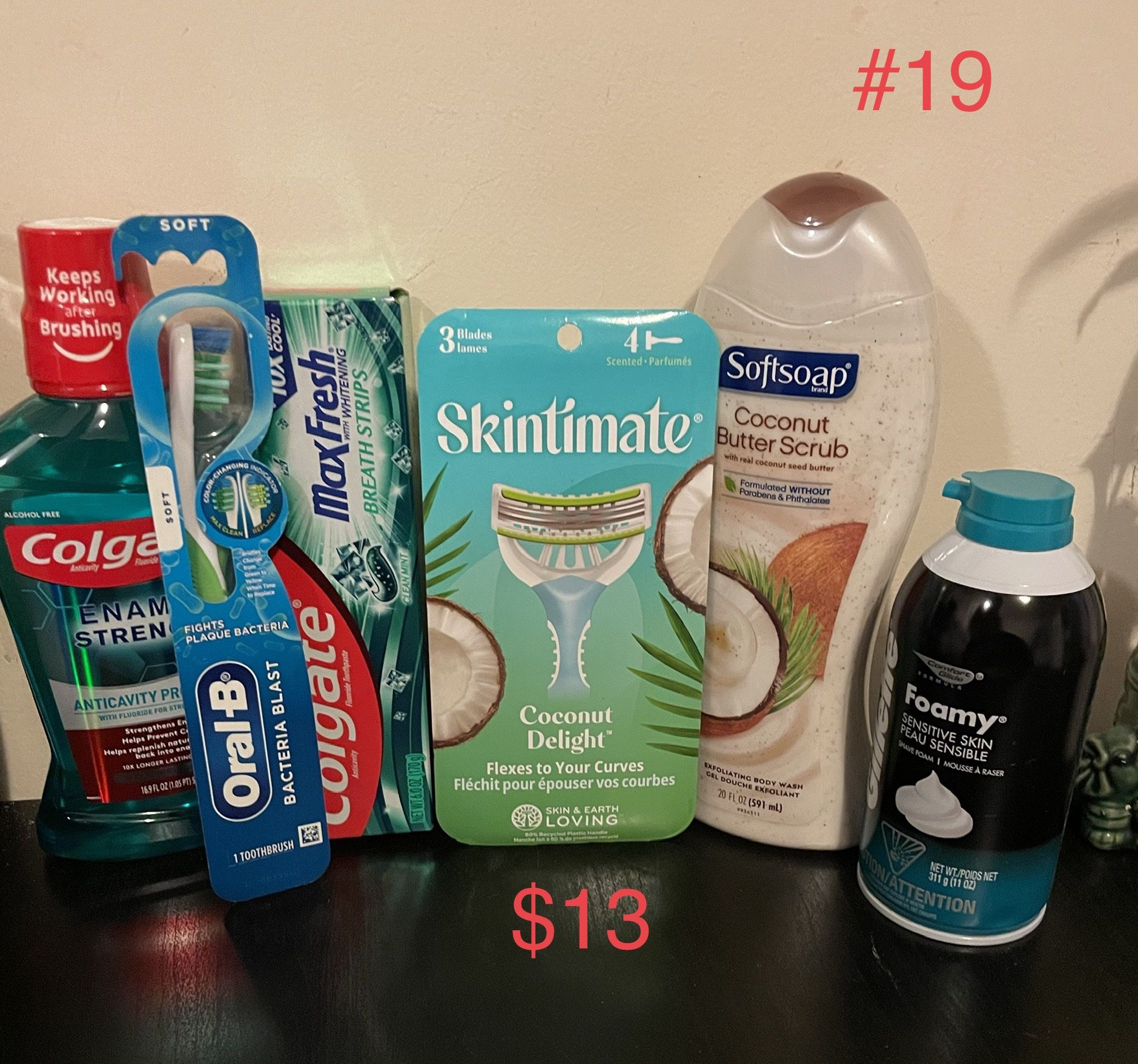 Please ask for bundle by Number if you want multiples. I will only allow people to substitute one to two items prices may change. prices are very good compared to stores. All my prices are less than half or half the price. I will be posting every day no bundles of all different brands. If there’s something in specific that you want let me know and I can definitely get it for you. I am a coupon or so it doesn’t mean I get things for free it just means I get better discounts so don’t lowball me please. I get all kinds of brands like tide gain Downy Kleenex fabreeze salonpas Dulcolax eucerin Jurgens dove soft soap Irish Spring Colgate crest glade schick skintimate Neutrogena Olay bliss clean and clear L’Oreal Claires Vaseline curel bounce clorox Gillette Venus whole blends GSQ tresemme herbal essence head and shoulders suave Noxzema nivea snuggle oral B Johnson and Johnson Scott covergirl Maybelline paparazzi revlon nyx Degree secret SOL purex persil suavitel and many many more brands so just ask if there’s something in specific you want and I will get it together for you. Thank you and have a blessed day…