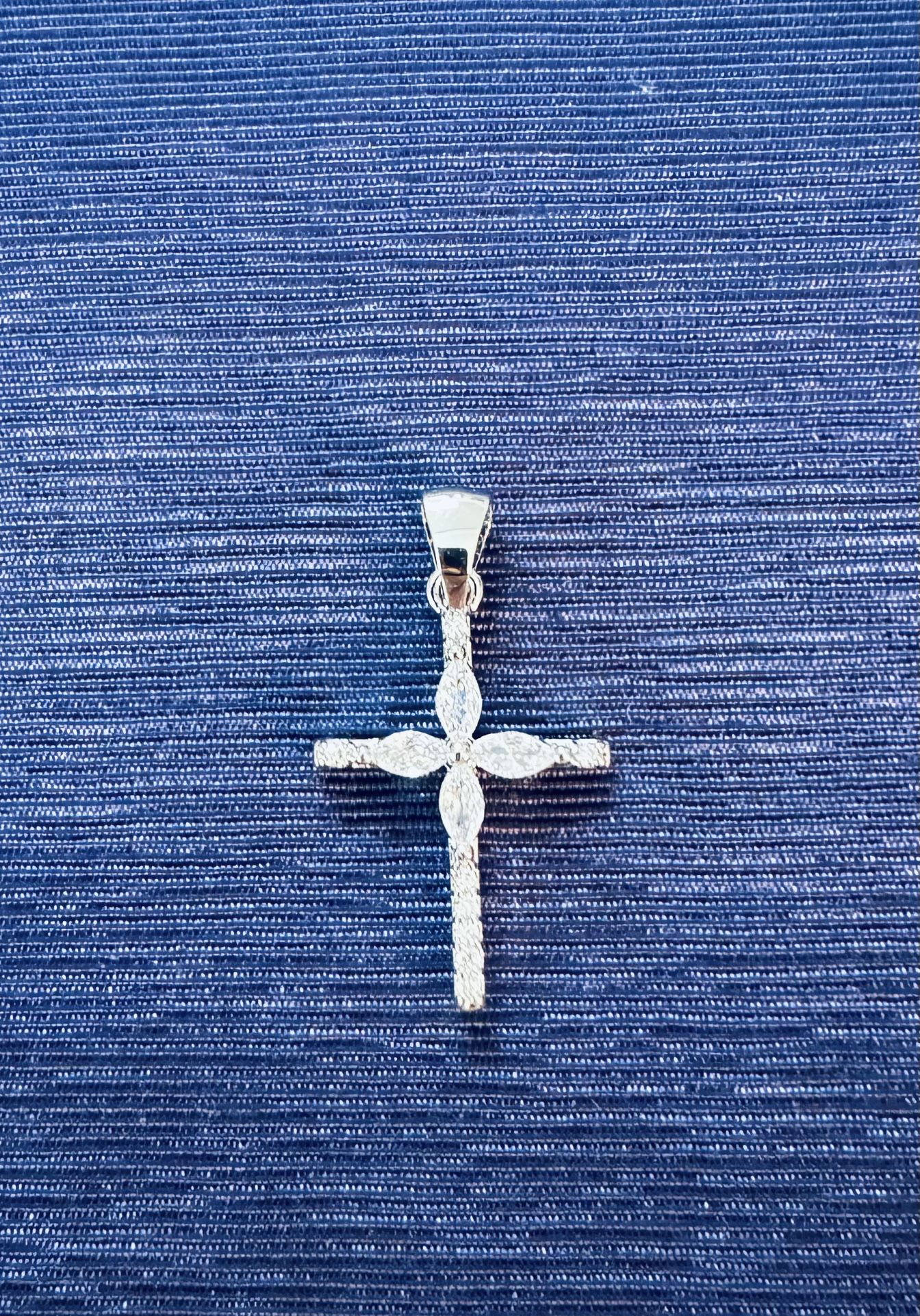 Clear CZ diamond Cross Pendant 1” Silver Plated