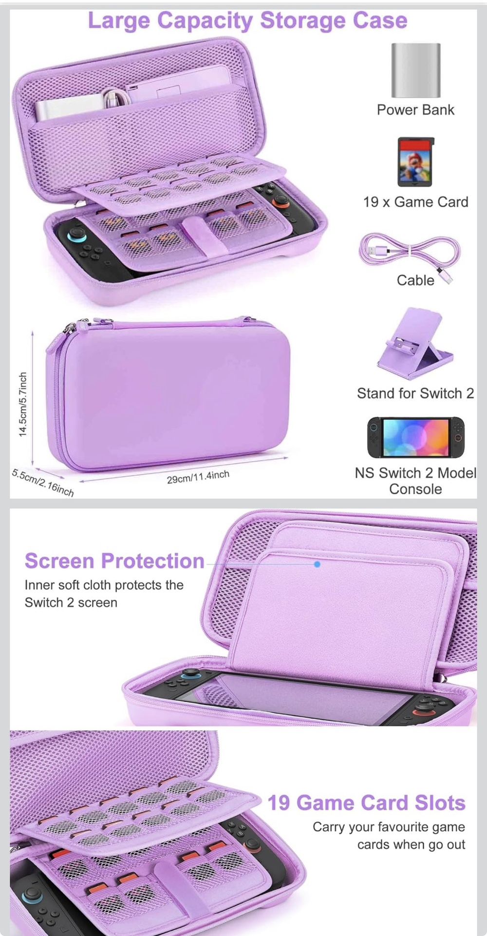 New - Open Box Younik Switch 2 Case Compatible with NS Switch 2 (2025), Carrying Case with 19 Game Card Slots, 4 in 1 Switch 2 Accessories Includes Shoulder Strap, Wrist Strap & Stickers (Purple)
