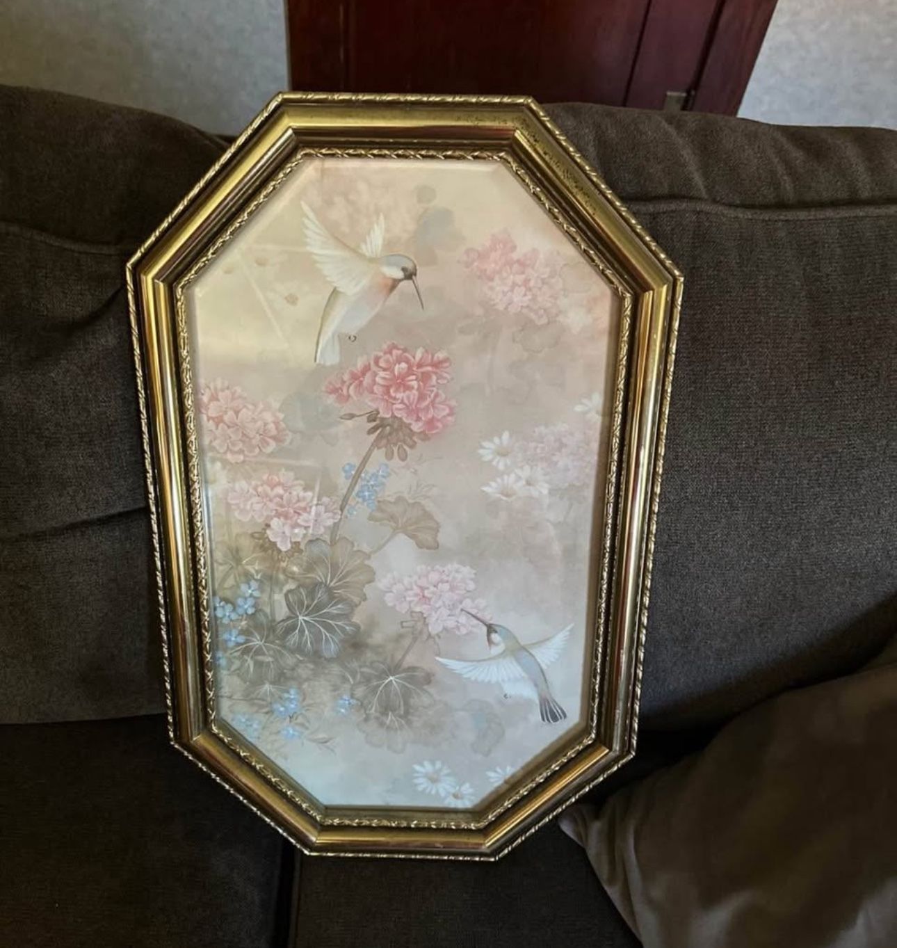 Final sale, Vintage Syroco Hummingbirds Pink Hydrangeas In oval Gold Frame, 14x22”, 1984 Approx - 14”x22” Weight - no packing : 3 lbs