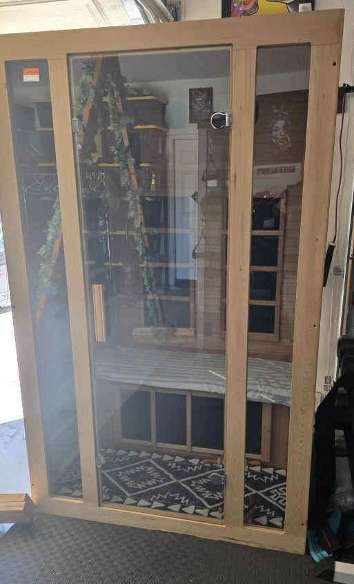 JNL 2 person infrared sauna in perfect condition only used a hand full of times Has 100v plug for regular outlet Heats up to 140 degrees Has Bluetooth speaker system Zero issues with it Has upgraded red light and other light therapy Need gone asap do to moving Paid 1700 for it 6 months ago Asking 1000 If you're looking for other gym equipment check out the rest of my post I have treadmill elliptical squat/hack rack dumbells sauna proform training mirror noditrac pully machine and free weights