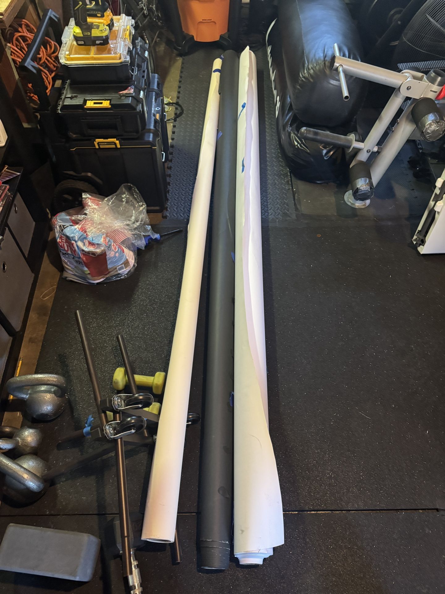 Black, almond and white Used white 30 percent left enough for full length set up Used black about 70 percent left Almond about 80 percent left I don’t have room for them