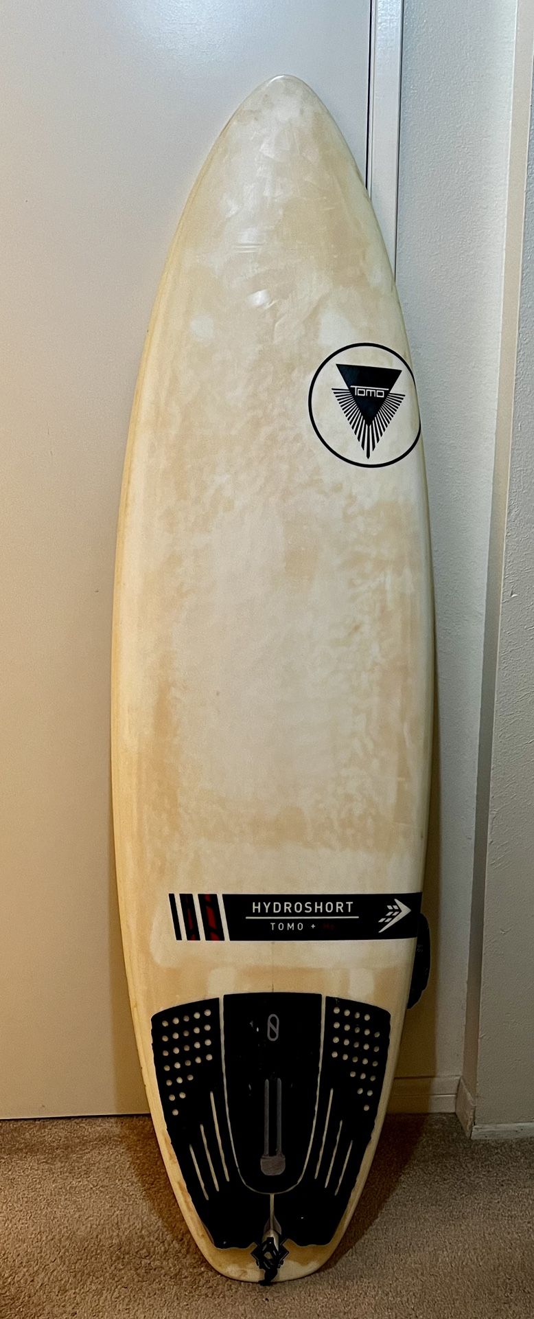Board is in good condition. No cracks and water tight. Has not had any repairs. Deck is just discolored by age. Dimensions : 5’6” x 18 9/16” x 2 5/16” at 25.5L Cash only