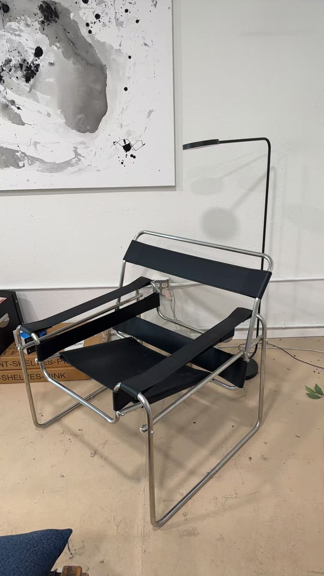 Designer-Style Black Leather Sling Lounge Chair – Chrome Frame (Bauhaus/Modern)
