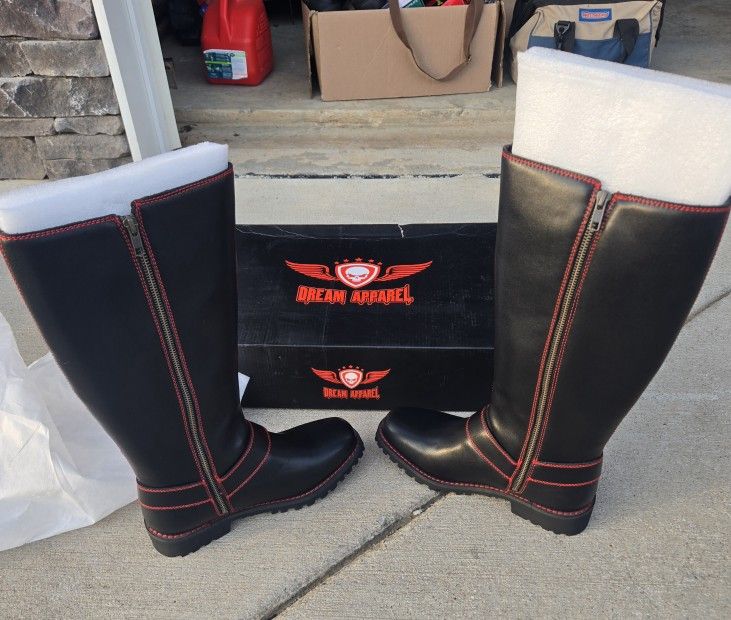 Brand new, never worn size 9 Women's Dream Apparel Motorcycle boots. Located in white house and can meet in Hendersonville