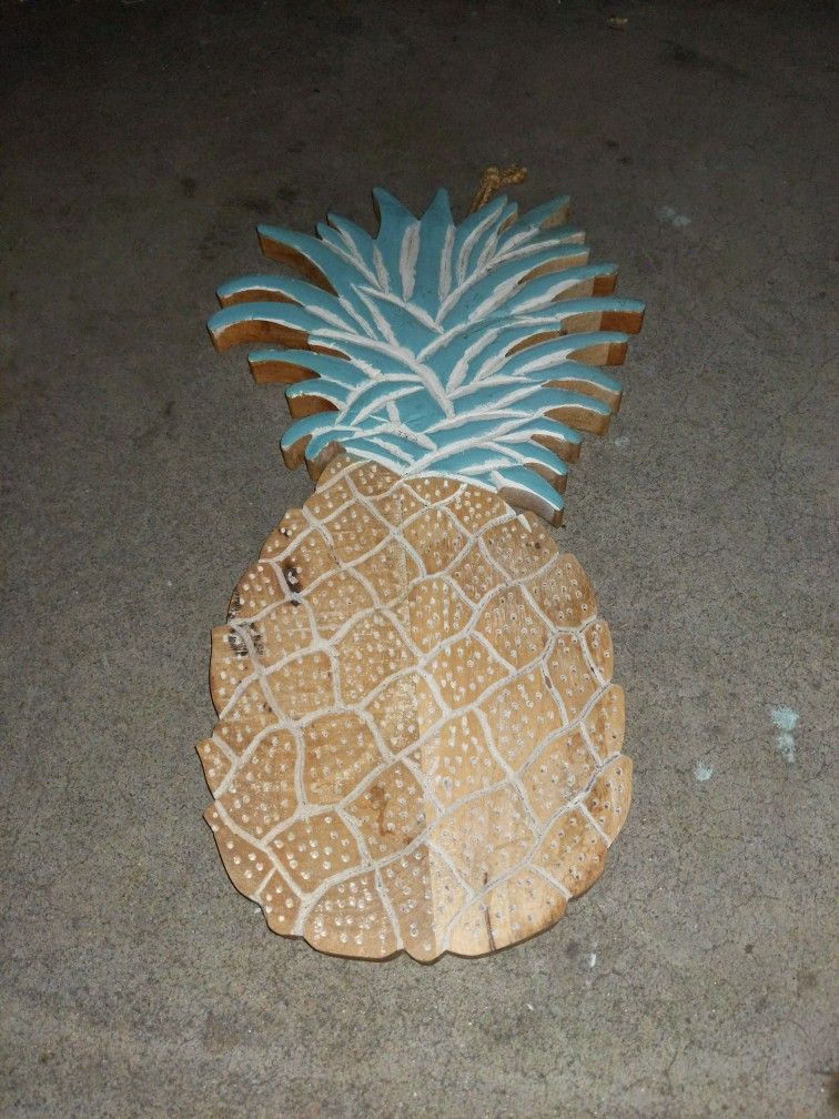 Beautiful wooden pineapple decor. Carved details and paint highlights. 16" x 9" x 1" No chips or cracks.