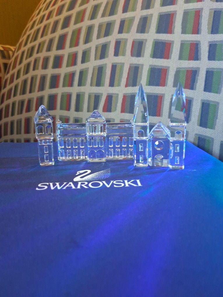 New. In box. Austrian Crystal. Set of three mini houses/citadel/ect