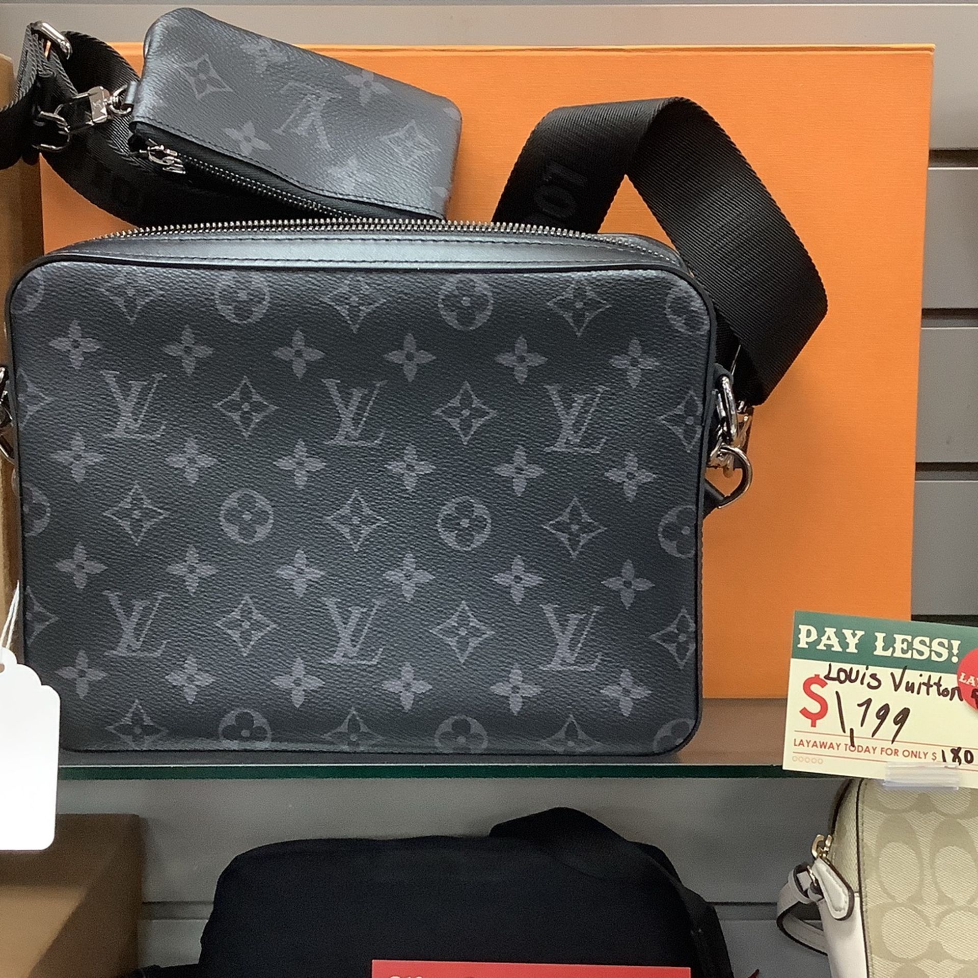 Wow- what an incredible price on a beautiful and authenticated Louis Vuitton bag. Comes with box, this crossbody has the wallet and a little coin purse. Item can be put into six month layaway with no interest, sales tax is included in price. 1230 W Devon. Want an even better deal? Ask for Liam