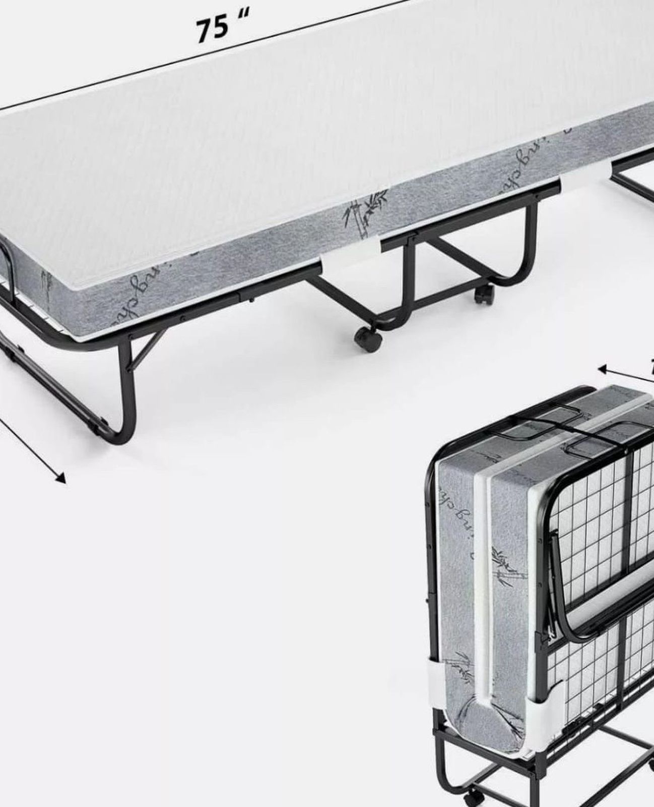 This item is new but a return so its been moved and sorted In the warehouse so it has some scratches here and there and small dings with no mattress but it's still in perfect working condition nothing wrong with it at all so it's only the foldable metal bed frame.... You can come check it out before you buy it. Best offer gets it no holds.