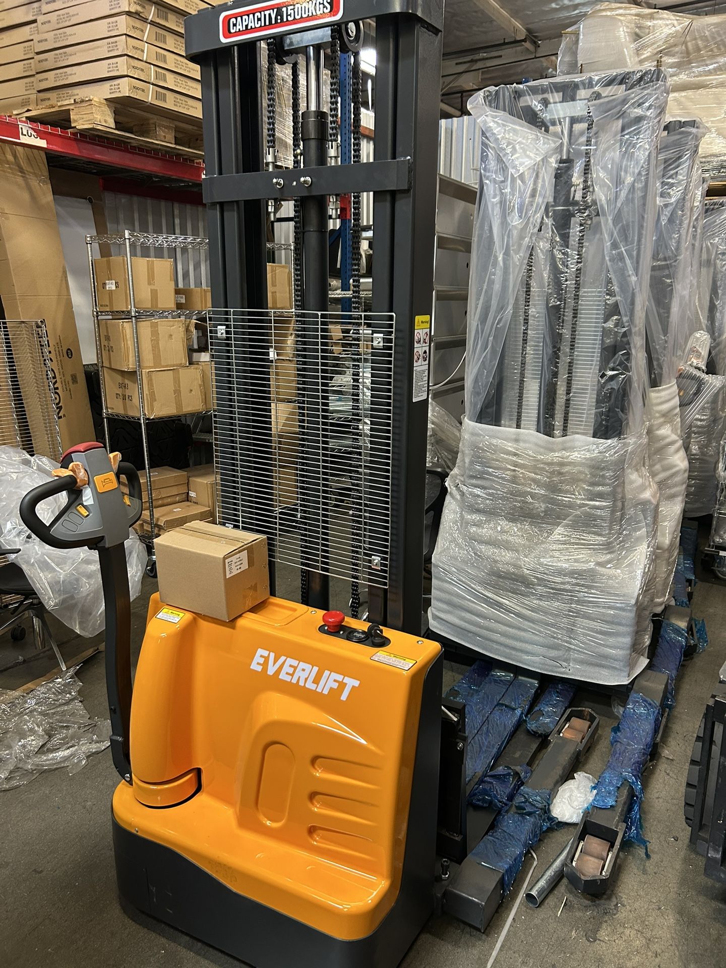 Brand mew direct factory sale $4,999 best price in the country, retail value of $12,000 online and from other dealers Lifting capacity of 3300lbs and lifting height of 135” Boost the efficiency of your warehouse while saving huge storage space with this fully electric pallet stacker Ideal to load racks / stack pallets, trucks loading and unloading without needing loading ramps or loading docks For warehouse, logistics, shipping and receiving pallets, forklifts pallet jacks