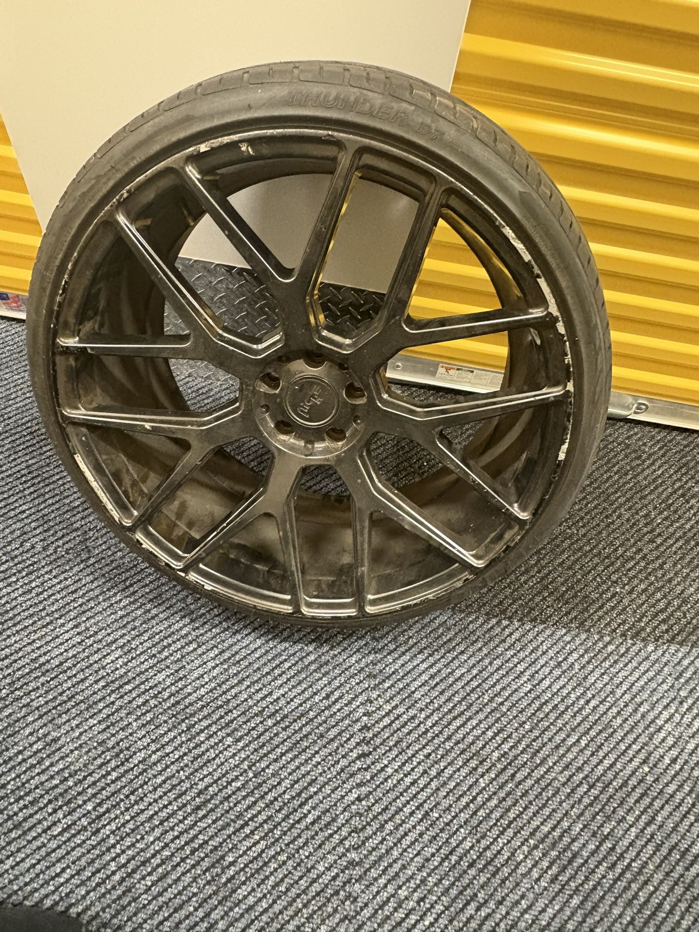 the rims are just dirty in the picture. has chips nd scrapes but can get it touched up tires are in great shape. i originally paid $1,800 just for the rims alone.