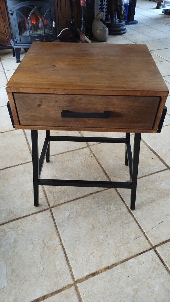 Corinna angle Leg brown wood and black side table. Made by Whalen furniture