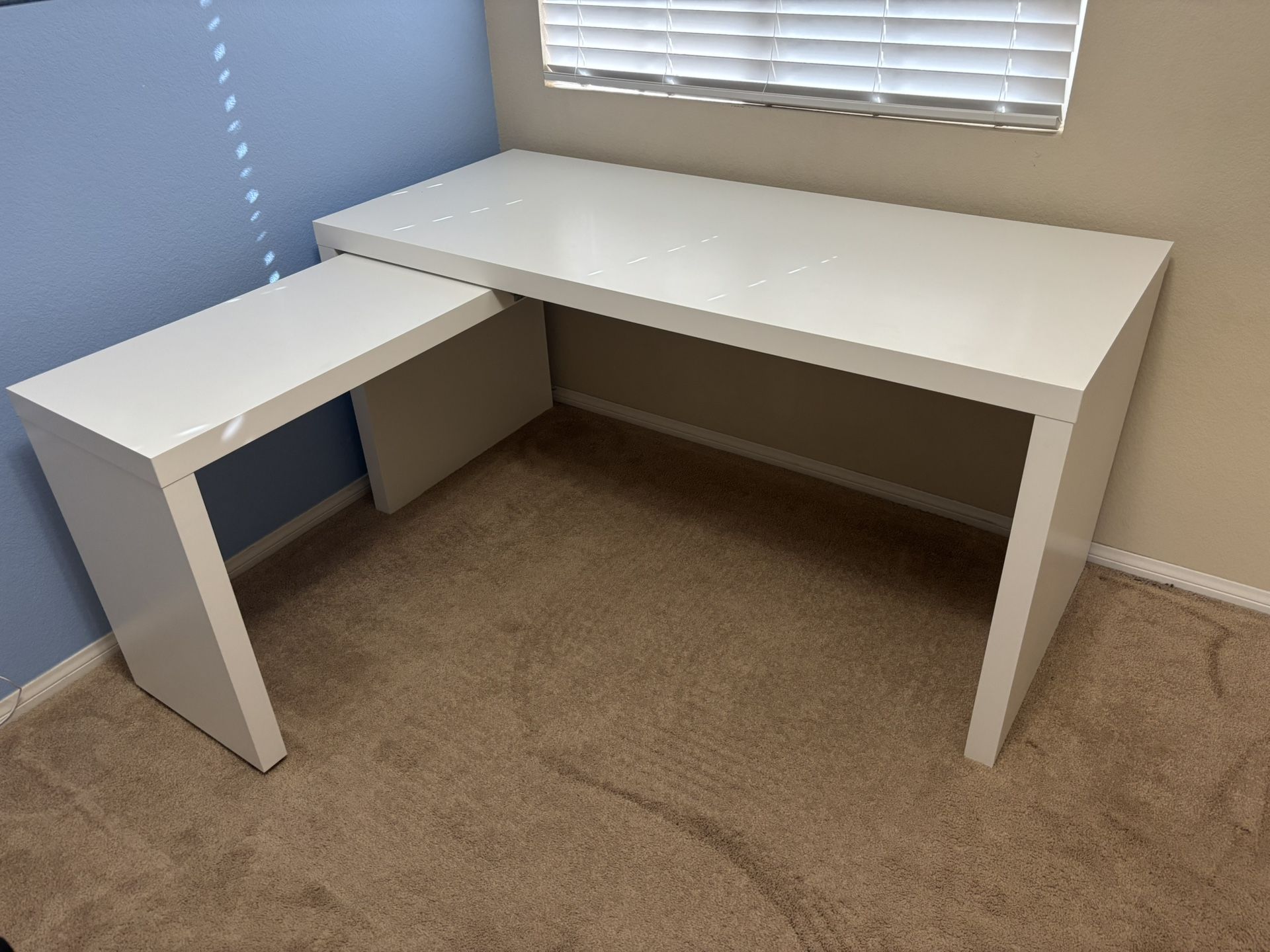 IKEA MALM Desk with pull-out panel, white. Almost no scratches or chips. Pull out panel has been detached for easier transport. Must pick up.