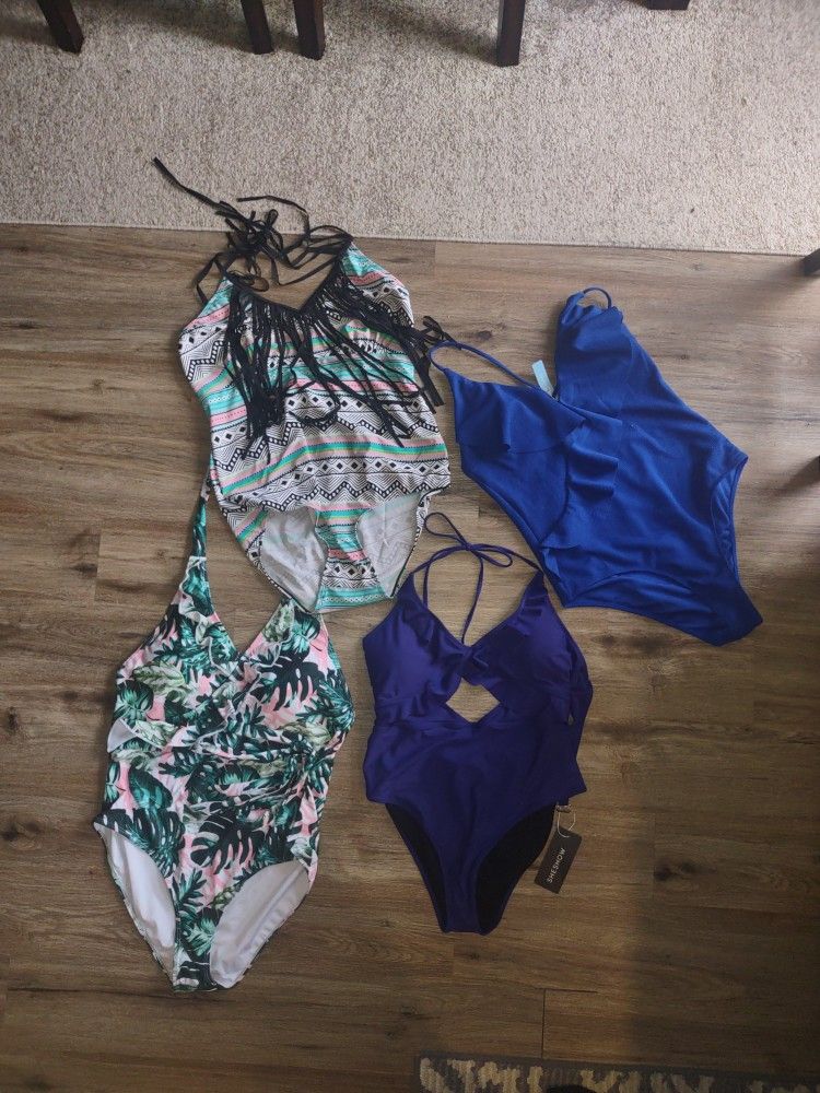 Ordered these on Amazon and none of them fit. I am 5'8 I'm at the time of purchase I was a size 16/18 They fit width wise but I do have a longer torso so lengthwise they were too short for me. I'm asking $20 per swimsuit with the exception of the multicolored one with the black Fringe, I am asking $10 for that one. Individually for all four it would be $70 but if you would like to purchase all four I will discount the lot down to $50